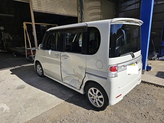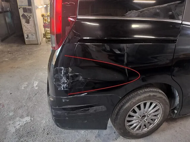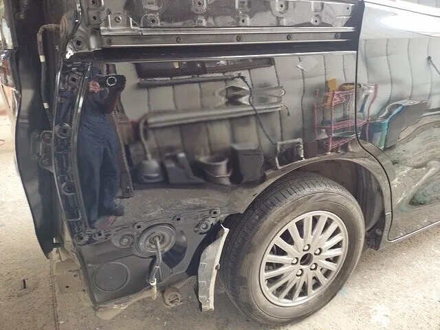 リアドアは中古パーツ使用、クオーターパネル新品交換にて修理しました。